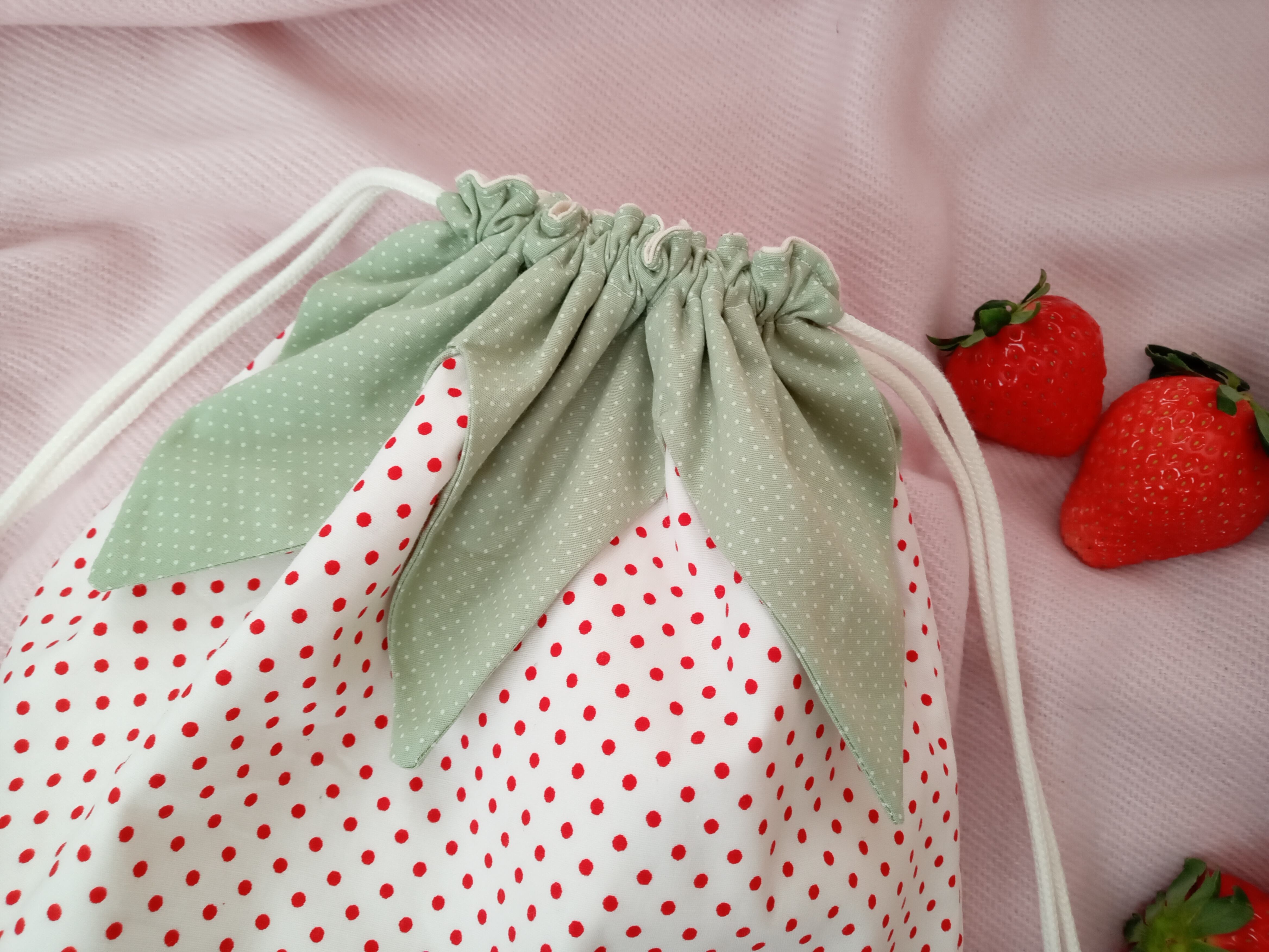 大粒白いちごの巾着